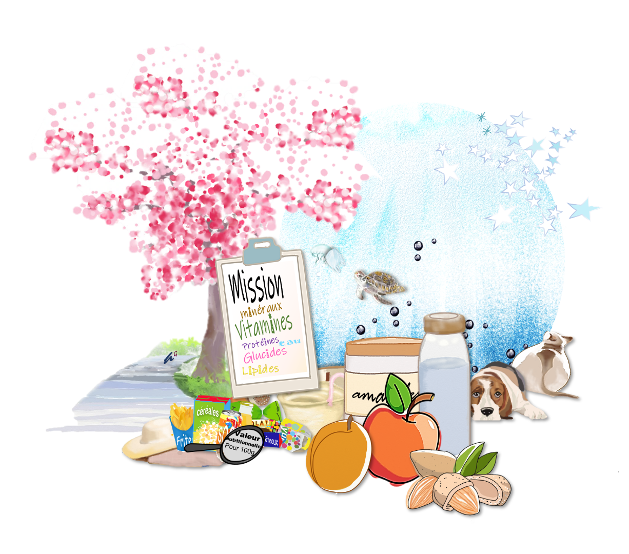 Quel lien entre une tortue marine, un chat énorme, un chien mal voyant avec le goûter d’un enfant ?